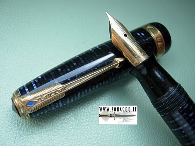 original Parker 14K gold nib F semiflex, perfect colour, no cracks, brassing or damages, few surfacely scratches, great barrel's transparence, vacumatic filler in working order. -ITEM SOLD- To buy or asking info please send a mail to pens@zona900.it specifying product code. Thank you |