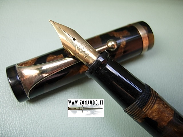 Sr size approx 14 Cm and quite fat, original big ASCO 14K gold nib F flex, great conditions, perfect colour no cracks or damages, lever filler in working order, rare pen very hard to be found in any conditions To buy or asking info please send a mail to pens@zona900.it specifying product code. Thank you |