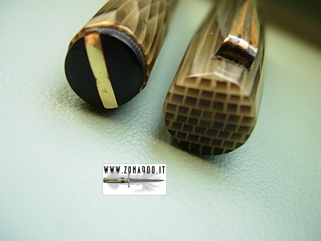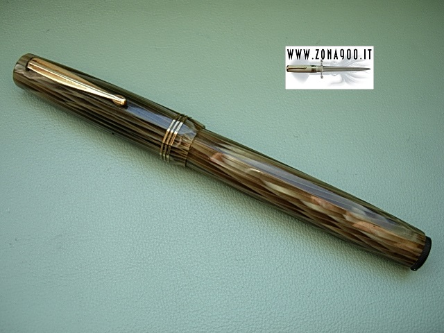 Sr size approx 13.5 Cm long and quite fat, original Aurora Platiridio #5 nib F very flex, very short and small crack on cap lip, trims are in polished brass, imprint worn but still present bottom lever filler in working order. -ITEM SOLD- To buy or asking info please send a mail to pens@zona900.it specifying product code Thank you. |
