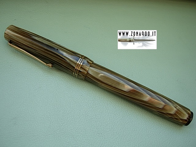 | Aurora Novum first series faceted shape from early thirties, green/gray striped celluloid,