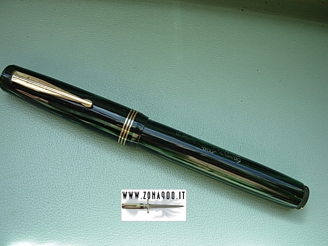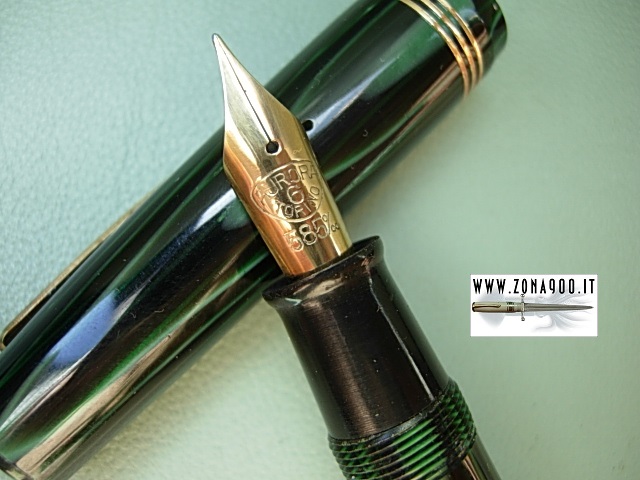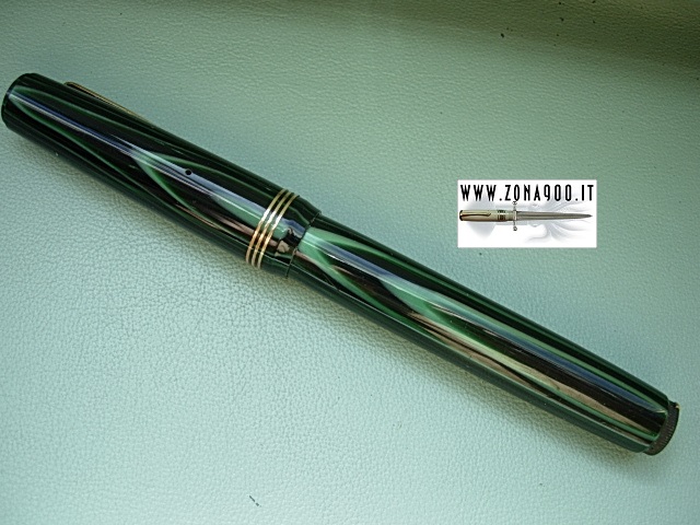 Sr size approx 13.5 Cm long and quite fat, original big Aurora #6 14K gold nib F very flex, perfect conditions, NOS never loaded just dipped to try nib, few surfacely age/storage signs only, trims are in polished brass, bottom lever filler in working order. One of most beautiful and perfect example of Novum ever seen in my Aurora's collector experience. -ITEM SOLD- To buy or asking info please send a mail to pens@zona900.it specifying product code Thank you. |
