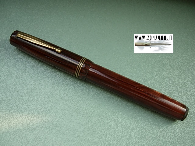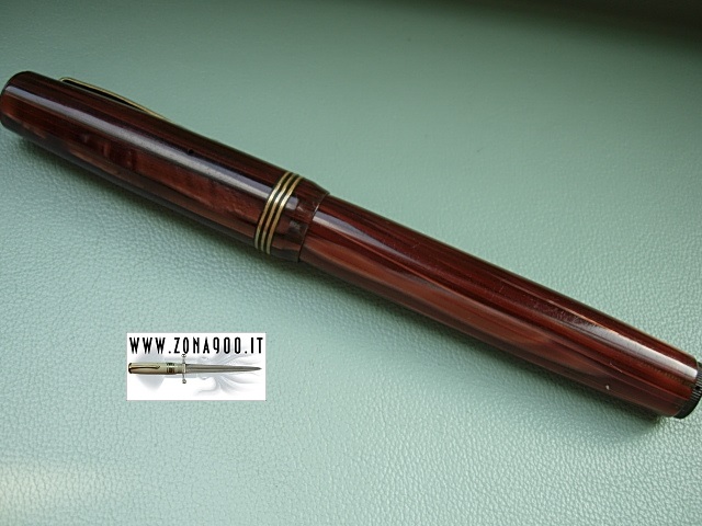 Sr size approx 13.5 Cm long and quite fat, original Aurora Platiridio alloy nib F semi-flex, great condition, surfacely signs only, no cracks or damages, trims are in polished brass, bottom lever filler in working order. -ITEM SOLD- To buy or asking info please send a mail to pens@zona900.it specifying product code Thank you. |
