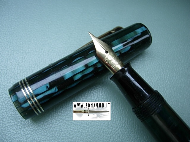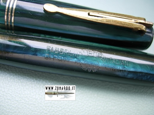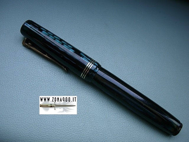 comes with rare safety clip, standard size approx 12.5 Cm long original Aurora #3 gold nib F flex, no cracks or damages, surfacely signs only, no crystallization, trims are in polished brass, crisp imprint, bottom lever filler in working order. -ITEM SOLD- To buy or asking info please send a mail to pens@zona900.it specifying product code Thank you. |