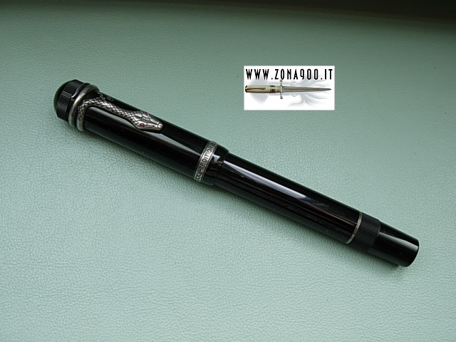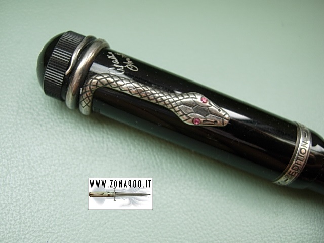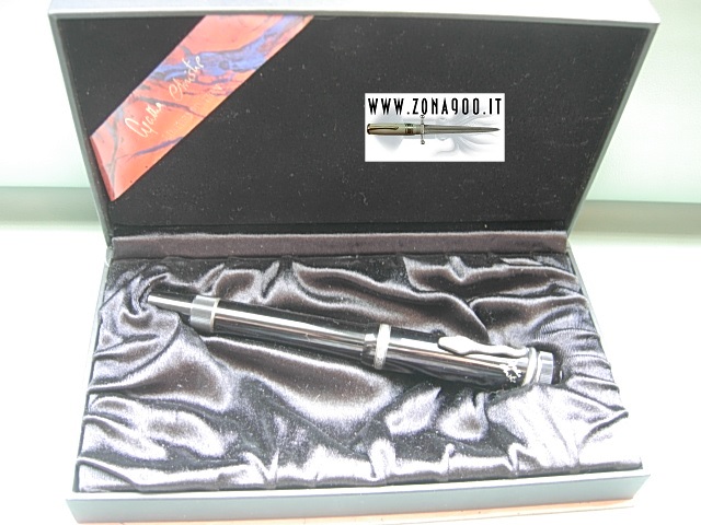 | Montblanc Meisterstuck Agatha Christie LE from 1993 silver trims, original 18K gold nib F with some flex and very smooth, great conditions, ligthly used, no cracks or damages, surfacely signs only, piston filler in working order, comes with original book shaped box. -ITEM SOLD- To buy or asking info please send a mail to pens@zona900.it specifying product code Thank you. |