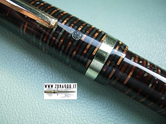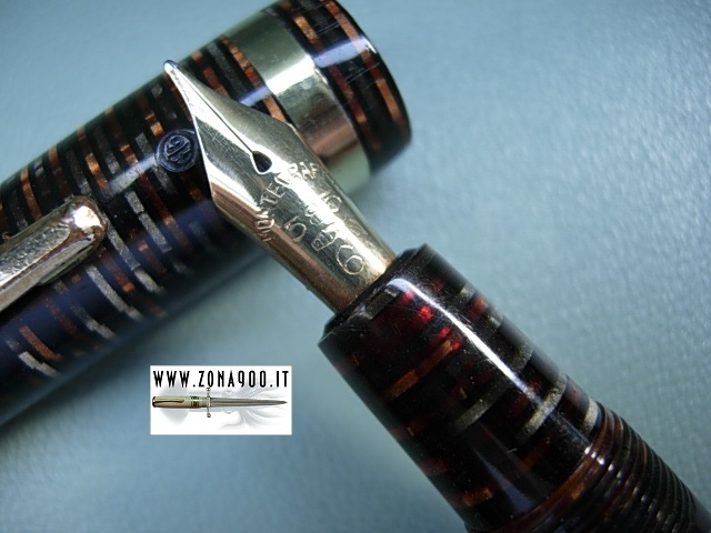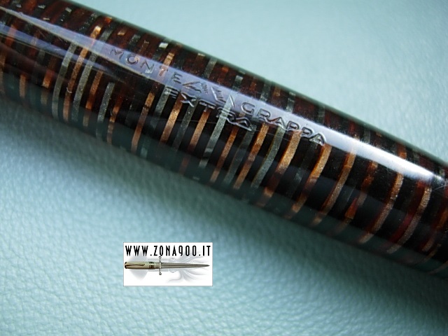 Middle thirties Montegrappa Extra fountain pen, orange and silver gray laminated celluloid,