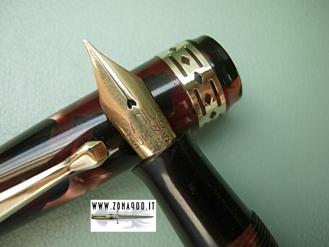 original Radius Superion 14K gold nib F flexible,NOS never loaded, just dipped to try nib, button filler in working order. -ITEM SOLD- To buy or asking info please send a mail to pens@zona900.it specifying product code Thank you. |