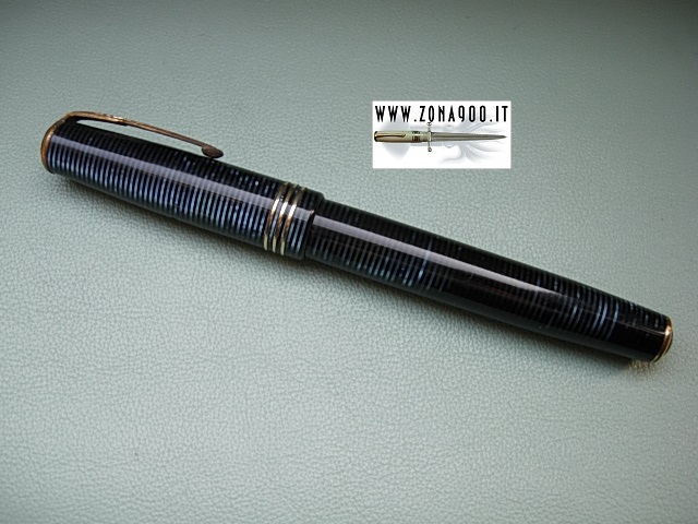 Late thirties Williamson Torino fountain pen, blue pearl laminated celluloid, approx 13 Cm, gold filled trims version, original Williamson 14K gold nib MFflex, great conditions, no cracks or damages, few brassing spots, button filler in working order. To buy or asking info please send a mail to pens@zona900.it specifying product code Thank you. |