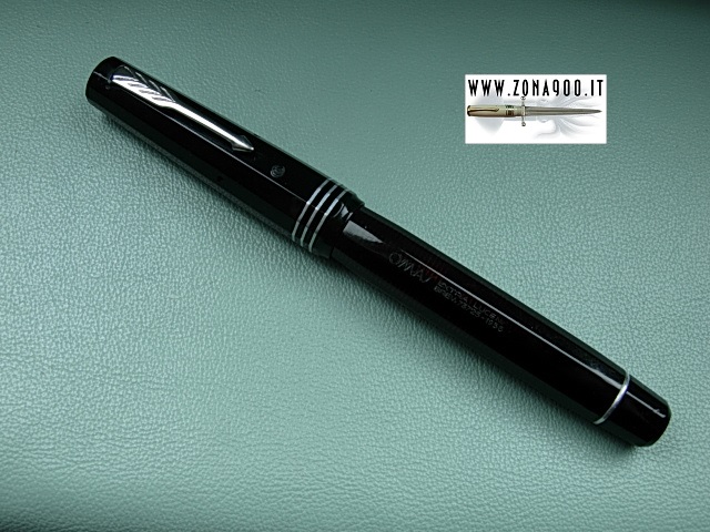 | Omas Extra Lucens white metal trims from 1939, jet black celluloid, Med size approx 13.0 Cm