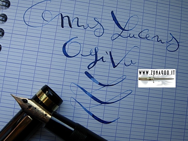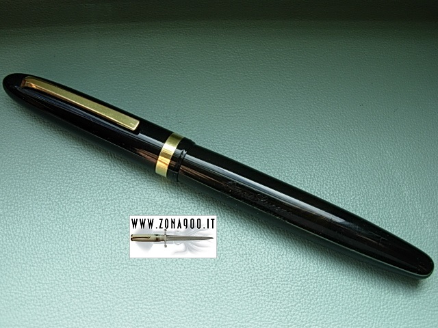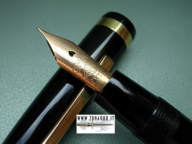 | Omas Lucens in rare Ogiva shape, from late forties, last Lucens model made by Omas, jet black celluloid, Sr size approx 14 Cm original Omas Extra 14K gold nib EF flex, excellent conditions, no cracks, brassing or damages, pen shows surfacely signs only, ambered barrel's transparence, stantuffo tuffante filling system, restored in working order. Not easy find this late version of Lucens, made for few years only, when piston filler pens ruled. -ITEM SOLD- To buy or asking info please send a mail to pens@zona900.it specifying product code Thank you. |