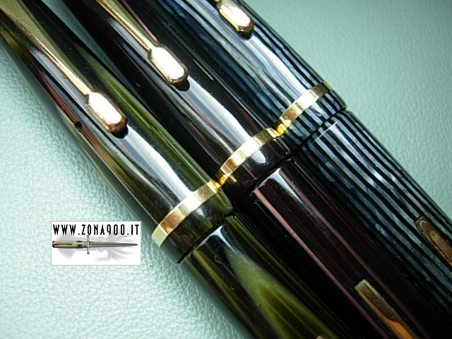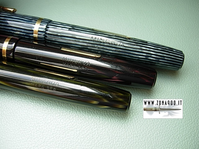| Early thirties Omas Minerva fountain pens, three avilable, cherry red arco, emerald green arco and blue striped celluloid, approx 11.0 Cm original Minerva 14K gold nib F flex, excellent conditions, no cracks, brassing or damages, few surfacly signs by age only, lever filler in working order. Faster chooses preferred colour, price is for each pen. -ALL PENS SOLD- To buy or asking info please send a mail to pens@zona900.it specifying product code Thank you. |