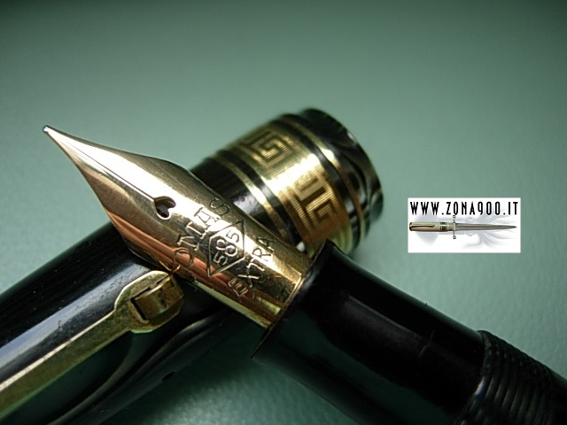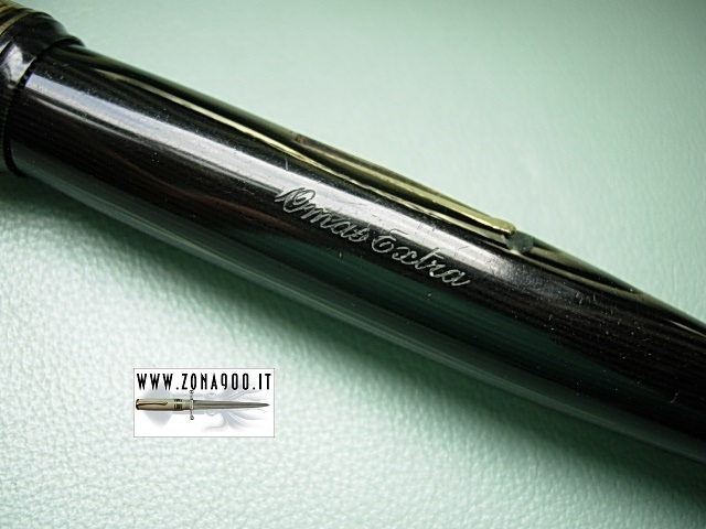 original Omas Extra 14K gold nib F very flex, great conditions, no cracks, brassing or damages, pen shows surfacely signs only, lever filler in working order, rare pen in one of most loved colour. Pen shows 'Enciclopedia Treccani' AD on barrel not common find advertising on so expensive pens in Italy, usually were used cheap or medium price pens to be gifted, interesting exception indeed -ITEM SOLD-