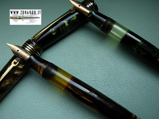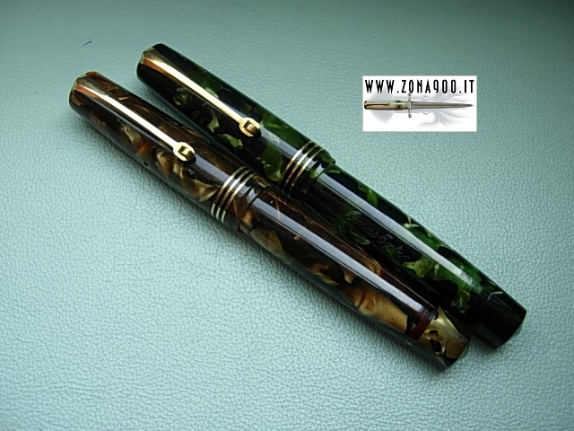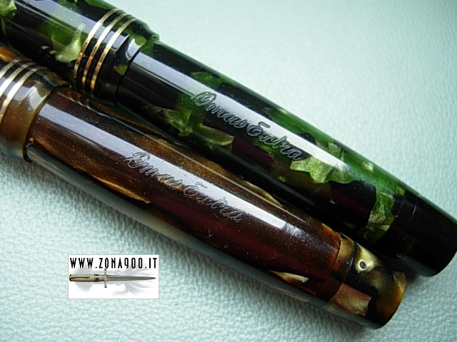 | Omas Extra from late forties, golden brown and green/black celluloid, Jr size approx 10.5 Cm