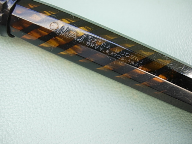 original Omas Extra Lucens 14K gold nib F with good flex, wonderful conditions, no cracks, brassing or damages, surfacely signs only, great barrel's transparence, stantuffo tuffante filling system in working order. -ITEM SOLD- To buy or asking info please send a mail to pens@zona900.it specifying product code Thank you. |