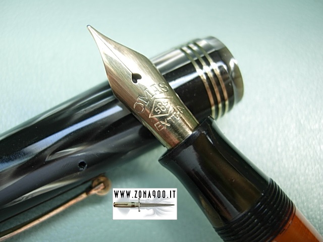 original Omas 14K gold nib F flexible, goodconditions, no brassing or damages, repaired crack on cap lip and surfacely signs very good ink window transparence, piston filler in working order. Rarely seen in oversize, great writer for everyday use To buy or asking info please send a mail to pens@zona900.it specifying product code Thank you. |