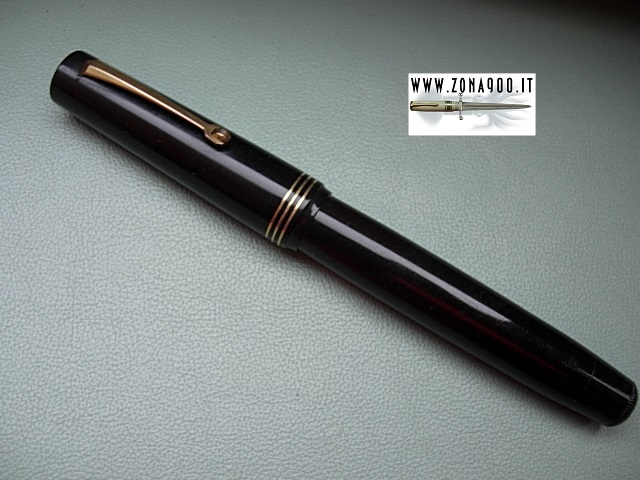 | Early Omas Lucens from late thirties, jet black celluloid, Sr size approx 14.00 Cm original Omas 14K gold nib F very flex, great conditions, no cracks, brassing or damages, red barrel's transparence, stantuffo tuffante filling system restored, in working order.