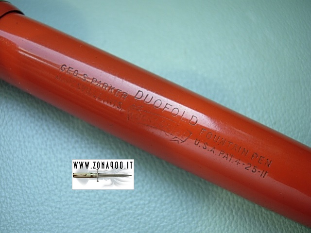 | Vintage Parker Duofold Sr flat top fountain pen in orange celluloid,