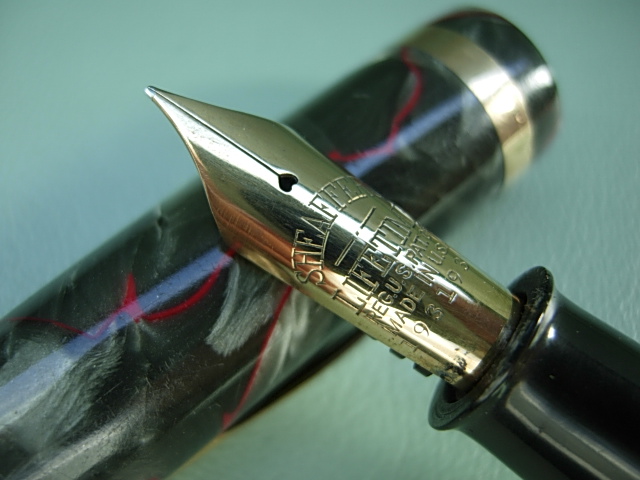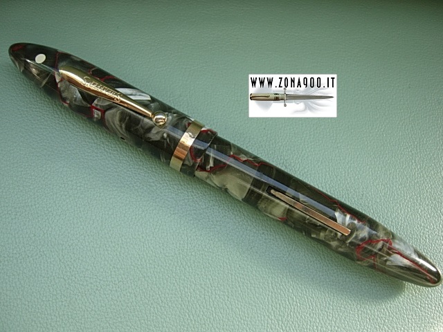 original Sheaffer 14K gold nib F rigid, perfect colour, no brassing or remarkable signs of use, small dings on cap ring only, lever filler in working order. -ITEM SOLD- To buy or asking info please send a mail to pens@zona900.it specifying product code Thank you. |