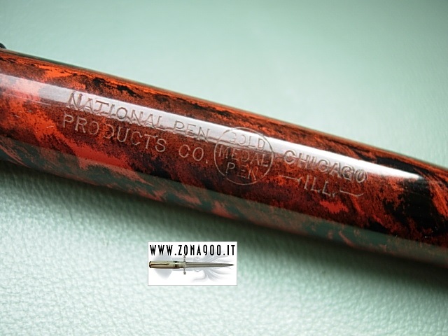 | National Pen Gold Medal Chicago red mottled hard rubber,, approx 3.5Cm long and quite fat,
