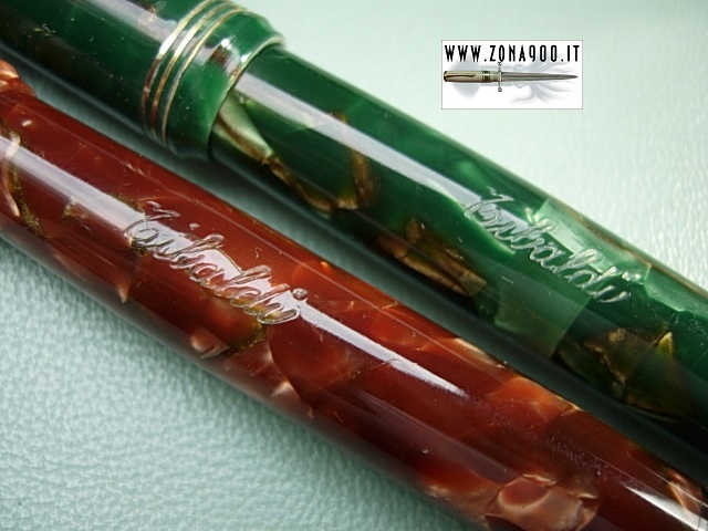 | Middle thirties Tibaldi mod 50, green/brown and red/green celluloid, standard size approx 13.5 Cm