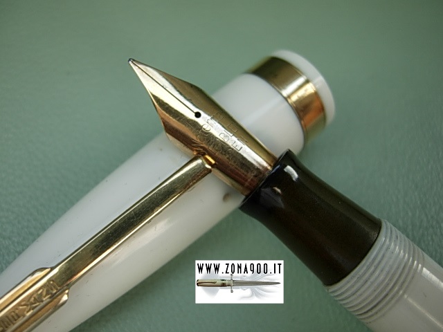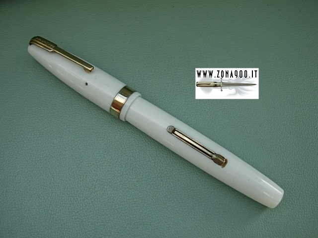 | Waterman Emblem Fountain Pen, white pattern made for MD, Sr size approx 13 Cm long, original Waterman 14K gold nib M with good flex, great conditions, no cracks, brassing or damages, very small signs of use, lever filler in working order. -ITEM SOLD- To buy or asking info please send a mail to pens@zona900.it specifying product code Thank you. |
