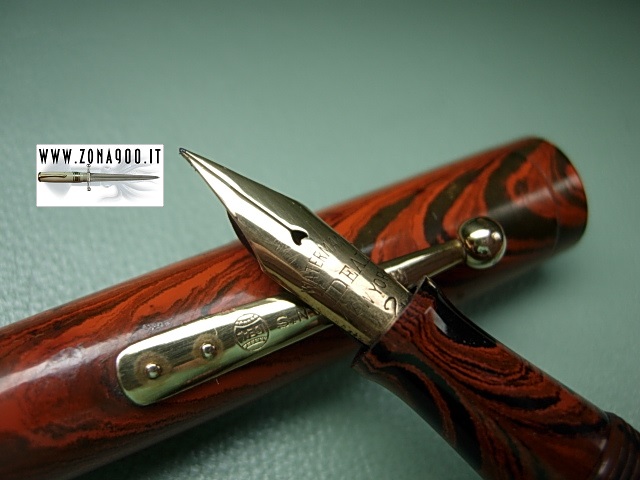 original Waterman #2 14K F super flex and super soft gold nib, great conditions, and imprints, no cracks or damages, lever filler in working order. -ITEM SOLD- To buy or asking info please send a mail to pens@zona900.it specifying product code Thank you. |