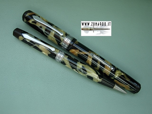 comes with original Waterman Patrician EF/F firm 14K gold nib, great conditions, no cracks, brassing or damages, bit of celluloid ambering on FB as usual for this colour ever filler, both pens in working order -ITEM SOLD- To buy or asking info please send a mail to pens@zona900.it specifying product code Thank you. |
